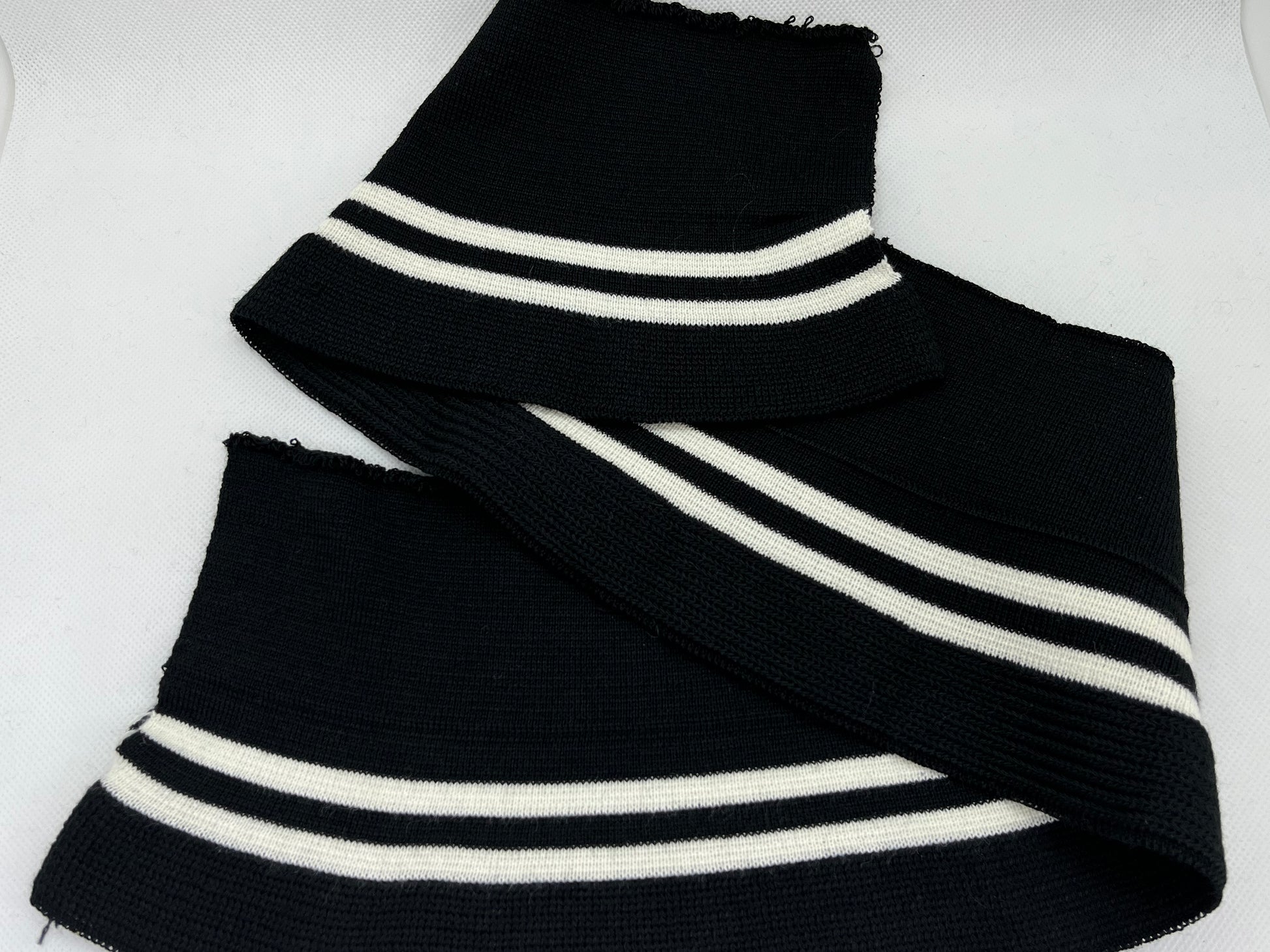 Le bord-côte Noir, rayures blanches, est confectionné avec différents matériaux de qualité supérieure. Il offre une finition élégante et durable pour vos projets de tricot ou de couture. MADE IN FRANCE