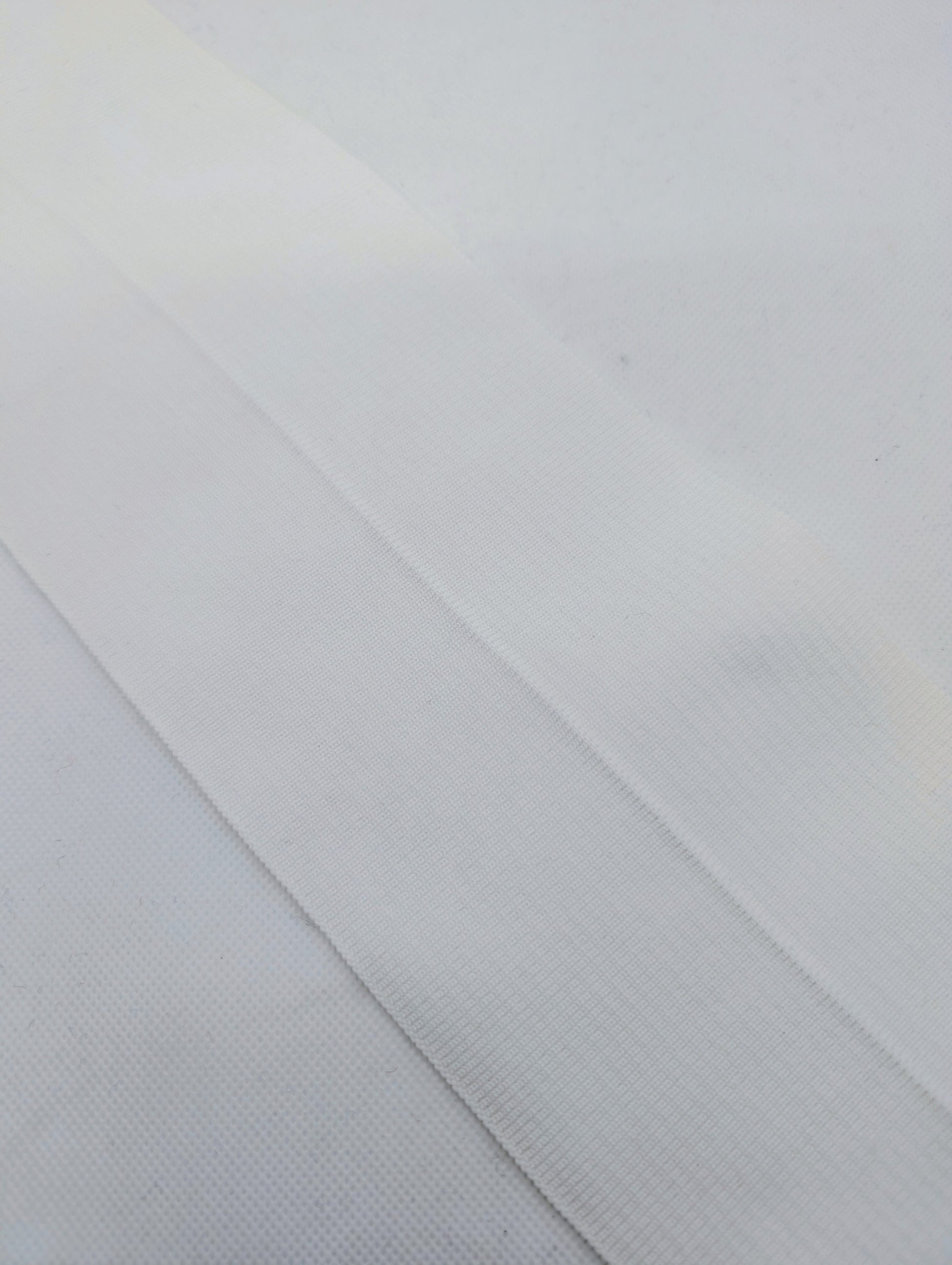 Le bord-côte en polyamide et élasthanne, couleur écru, en côte 1/1 offre une finition élégante et durable pour vos projets de couture.