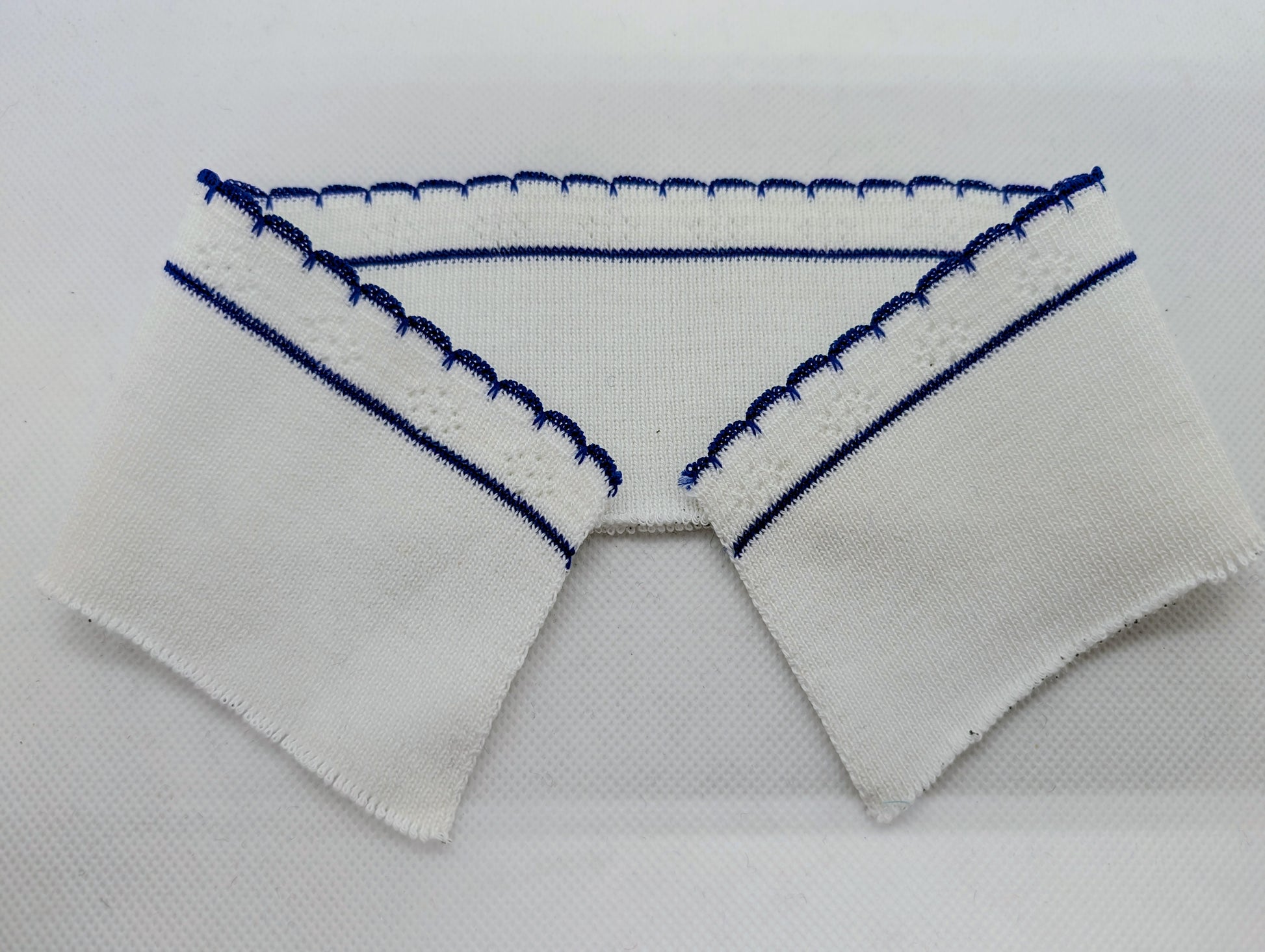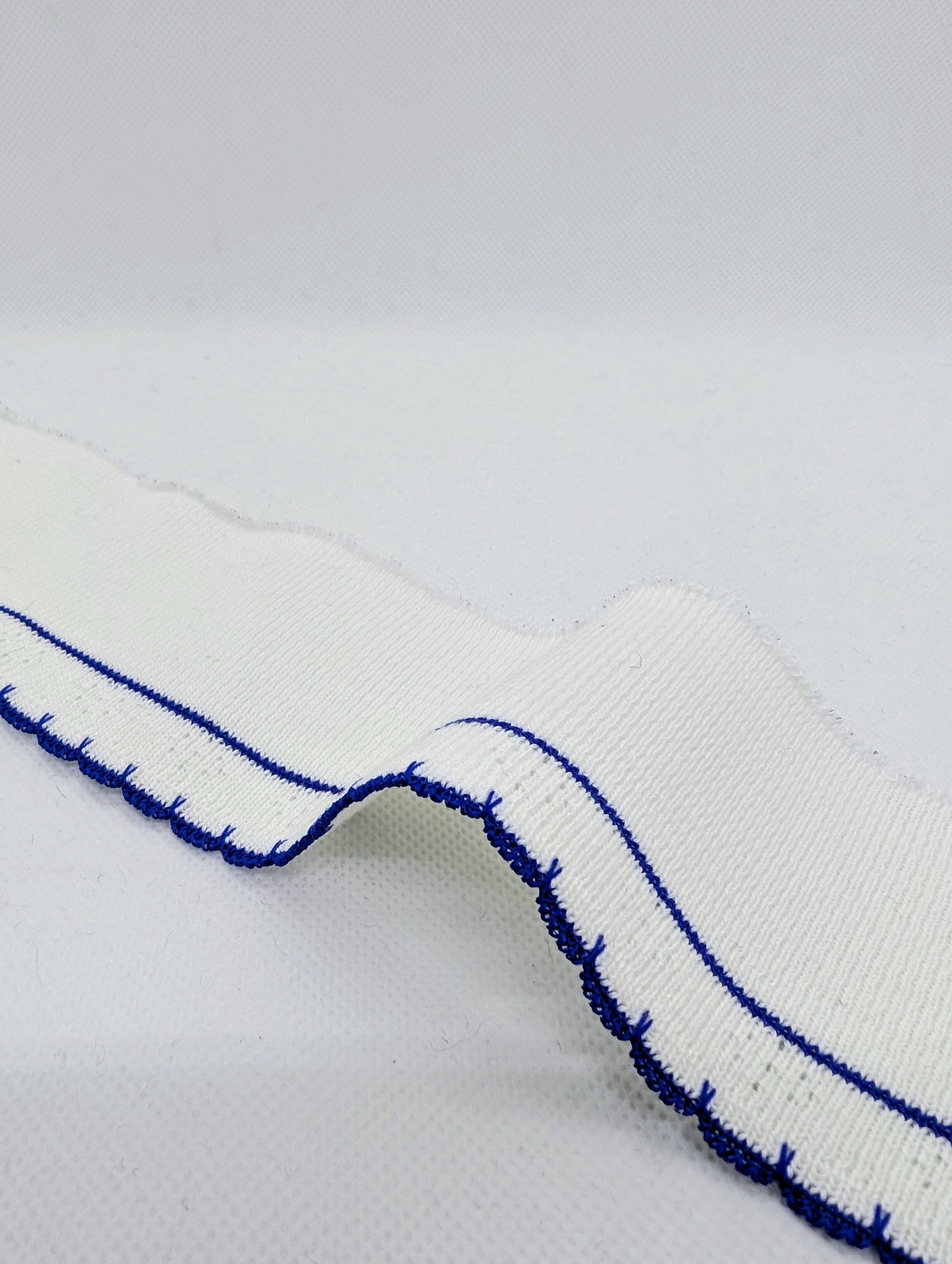 Joli col polo, en coton, couleur soft, avec deux rayures en polyester de couleur bleu Matisse. Le motif ajouré et le réseau en coquille lui donnent un effet printanier.