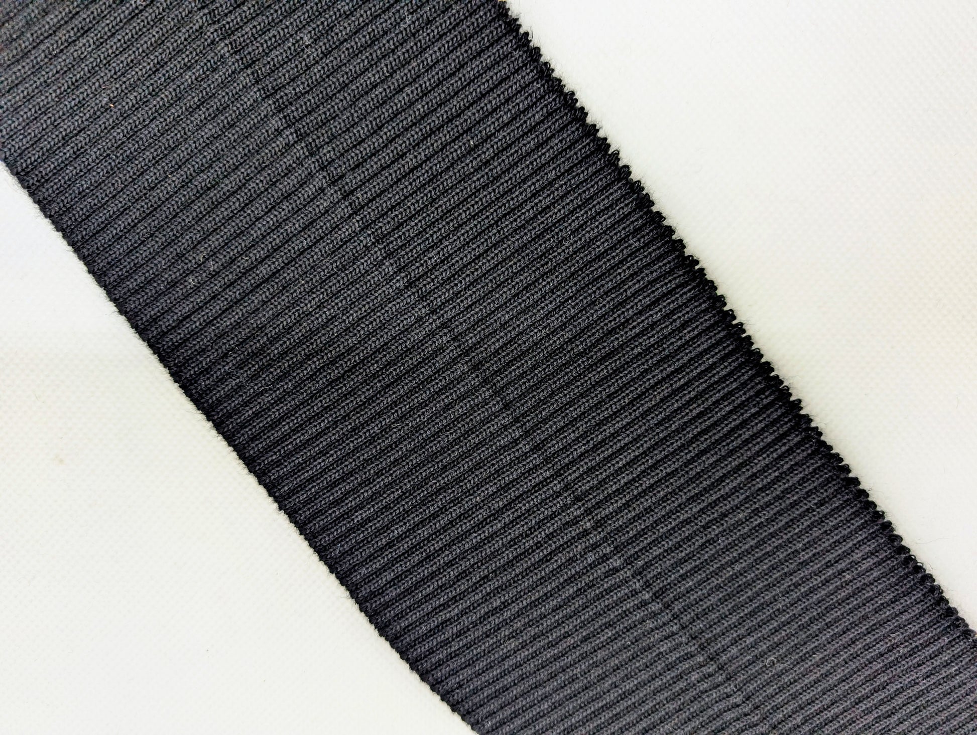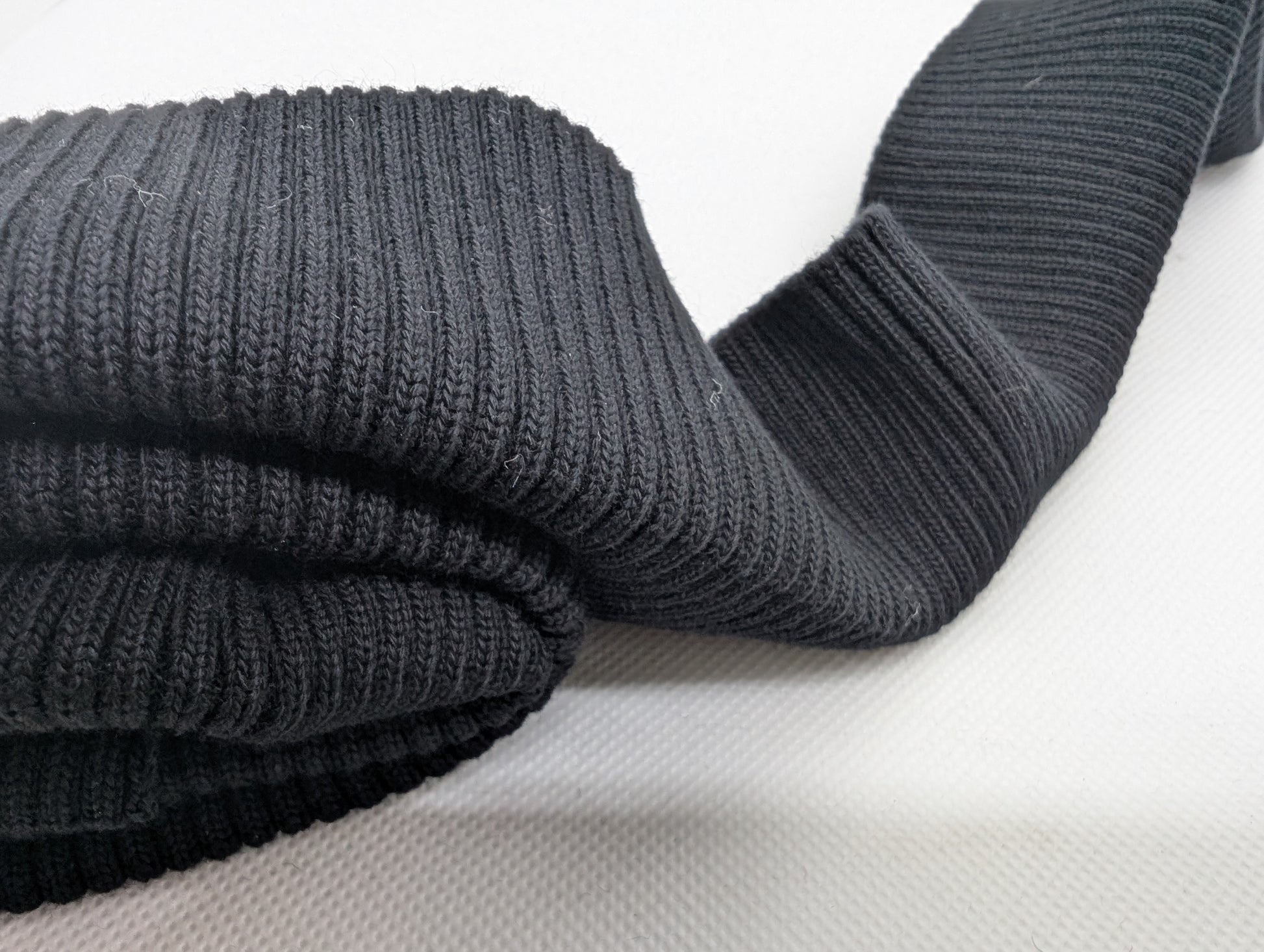 Bord-côte noir en coton et élasthanne, en côte 2/1, avec cassure, de très belle qualité, idéal pour des poignets ou un bas de veste.