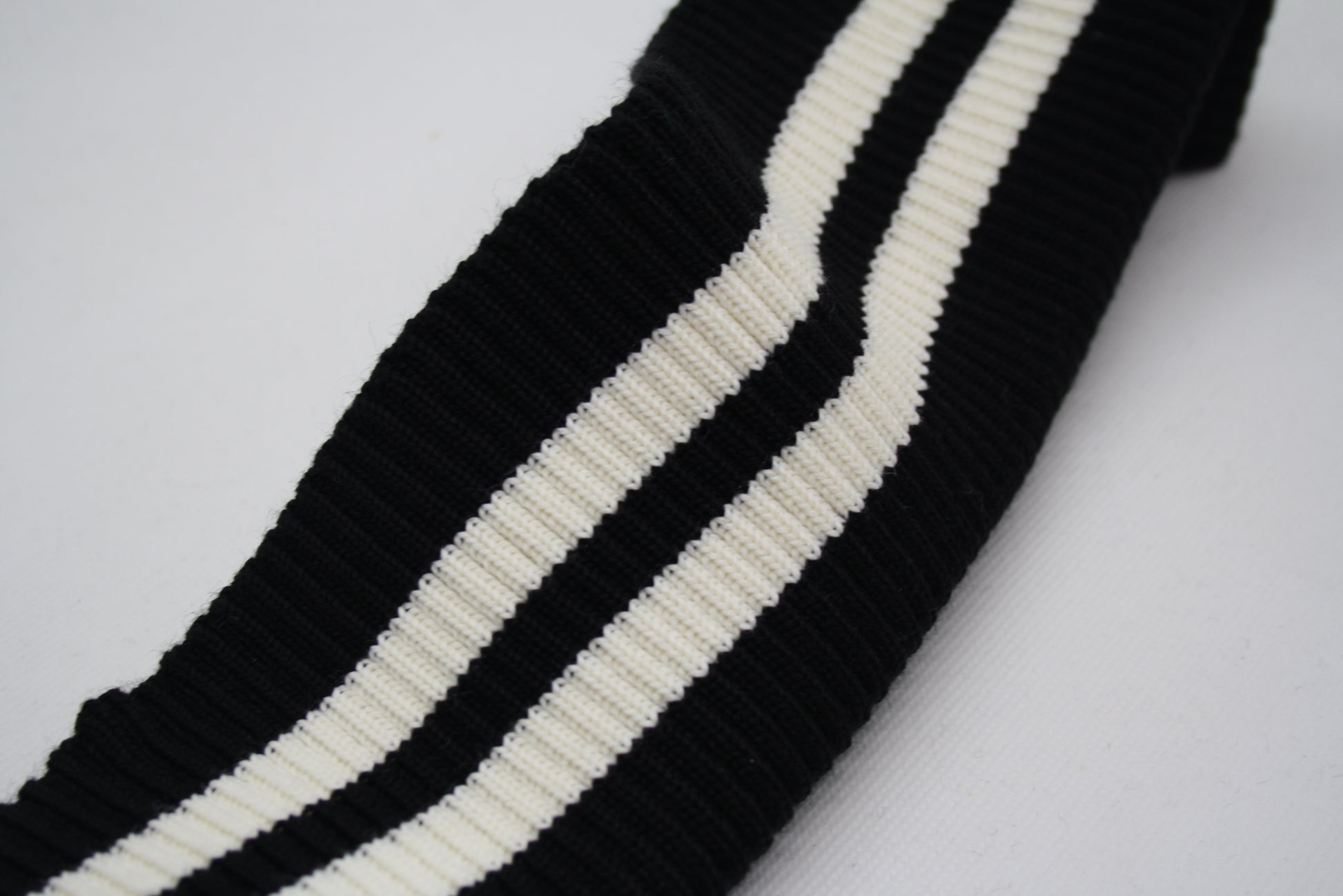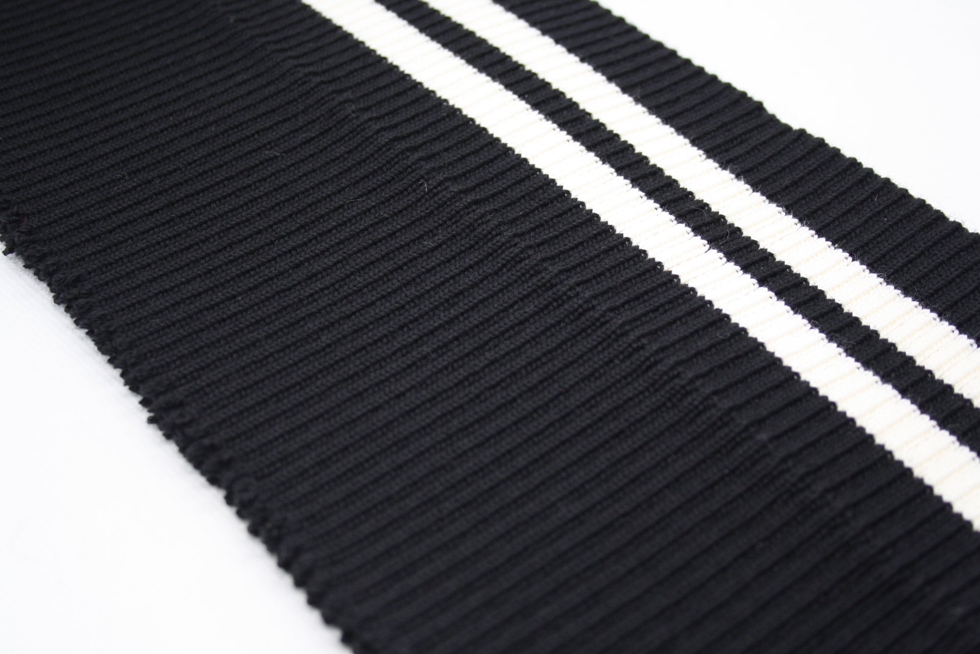 Bord-côte noir en acrylique laine avec deux rayures blanches, en côte 2/1.