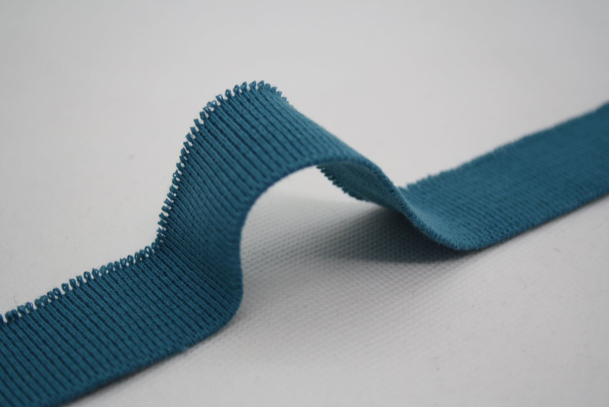 Bord-côte bleu turquoise en coton et élasthanne côte 1/1
