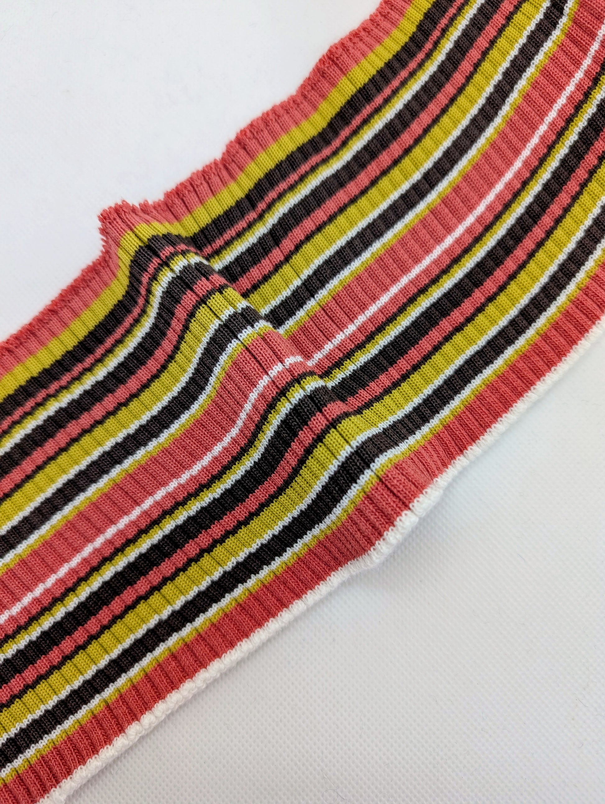 Bord-côte rayé en coton et élasthanne, toutes ces rayures très colorées et tendance donneront un effet pop à vos créations. Parfait pour des poignets.